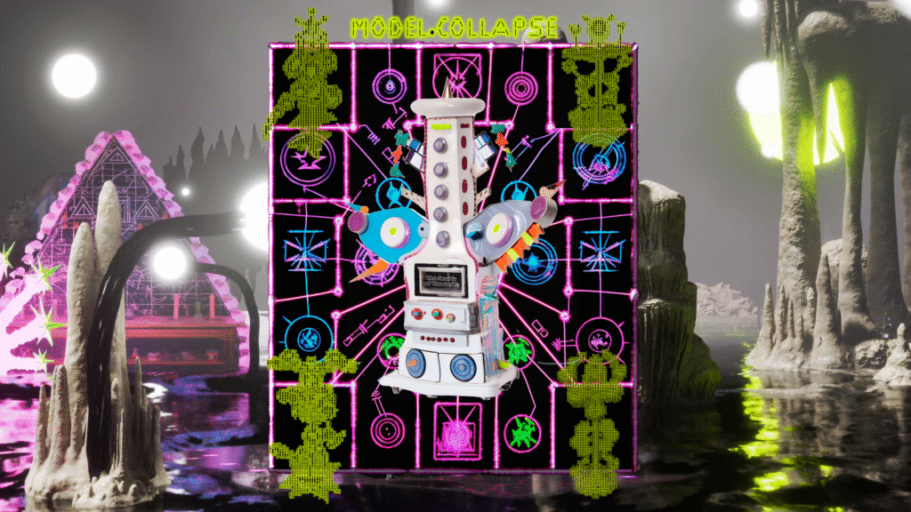 They will dive into their recent works to show how immersion and alternative storytelling open up new ways of engaging with AI’s complexities. One of these works, Model Collapse, depicts the landscapes from which AI emerges—its self-consuming origins in the extraction of earth’s resources and data—through a playful, glitching, ever-changing generative environment and archive of stories.